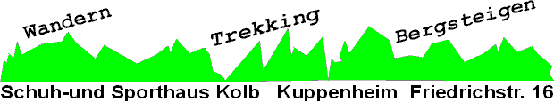 Seit 75 Jahren verkaufen wir Schuhe und seit 35 Jahren hochwertige Bergsportartikel. Unsere Kunden schätzen die fundierte Beratung und die große Auswahl an Produkten der namhaften Hersteller. Auch die Reparatur von Wander-und Kletterschuhen gehört zu unserem Service.